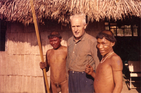 The year 1936 is significant: James Rathlef gets appointed to an Evangelist and preacher by the Wichernvereinigung (Raues Haus in Hamburg). His duty brings him to many parishes and churches all over Germany. 1951 he starts a totally new kind of evangelization in a tent hall: He founds together with friends the Zeltmissionsvereinigung Süd e. V. (To this day this tent is in use in many parishes.) Gerlingen's mayor Eberhardt is committed a lot to bring the Rathlef family to Gerlingen and let them build a house in Gerlingen's district Gehenbühl. In 1958 the housewarming ceremony and the first evangelical church service in Gerlingen's district Gehenbühl take place. In the Rathlef's house church services are celebrated for many years - until Lukaskirche is built. In later years the Evangelische Allianz in Gerlingen invites James Rathlef and his team three times for evangelizations in the tent hall. 1961 James Rathlef is co-founder of the Vereinigte Deutsche Missionshilfe (VDM). (The VDM is nowadays one of the biggest evangelical missions in Germany. Worldwide it's missionaries are on duty, often connected with domestic partner missions.) For many years Gerlingen was the domicile of this mission. For James Rathlef the resolution was fixed: "We need an initiative from Germany which does its upmost for the welfare of these oppressed indigenous people of South America." The primary focus shall be on the annunciation of the Bible's good news, the establishment of parishes and not least medical aid. James Rathlef gets a lot of support from his circle of friends with who he is in intensive contact. His friends are optimally informed by his newsletters and his mission newspaper "Werdet meine Zeugen" ("Become my Witnesses"). In the many years of his evangelization activities in Germany reams of adults and children had found the faith to Jesus Christ. Many of them like to support the new project. Some friends offer their help to do something themselves. 1961, that's in the age of 65, James Rathlef goes on the plane to South America. Jungle live. What will sway a man in a age in which others retire, to expand for half a year into the deepest jungle South America's? To run the gauntlet to be hunt by man-eaters, to accept killing tropical diseases and stresses and strains without end. Long jungle marshes, set up camp in the wilderness, swarms of mosquitos and bloodsuckers at day and night, danger with poisonous snakes, scorpions and ... and ... and ... | |||||